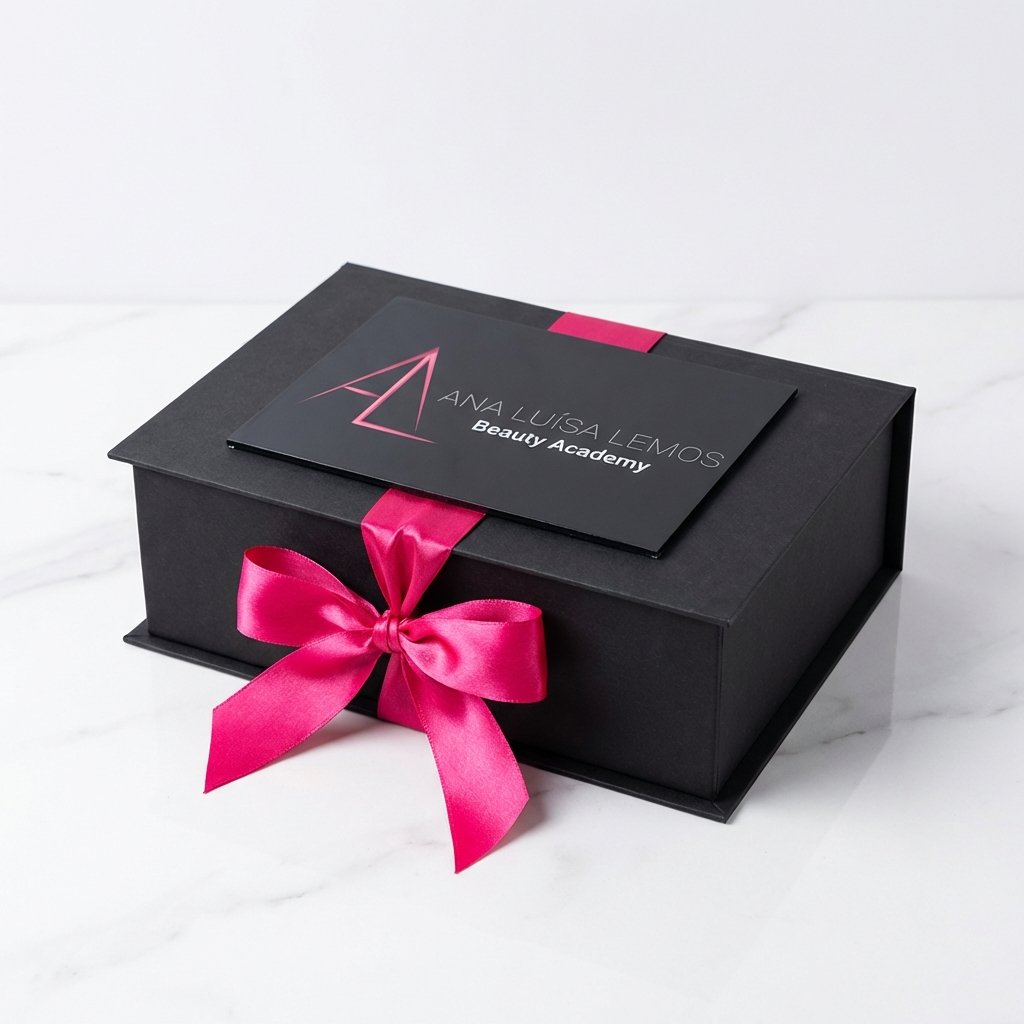 Caixa personalizada desenvolvida sob medida para cursos, eventos, kits de divulgação e experiências de marca. Disponível em diferentes tamanhos, formatos, cores e acabamentos, com possibilidade de fechamento especial e personalização conforme a identidade visual e a quantidade desejada.