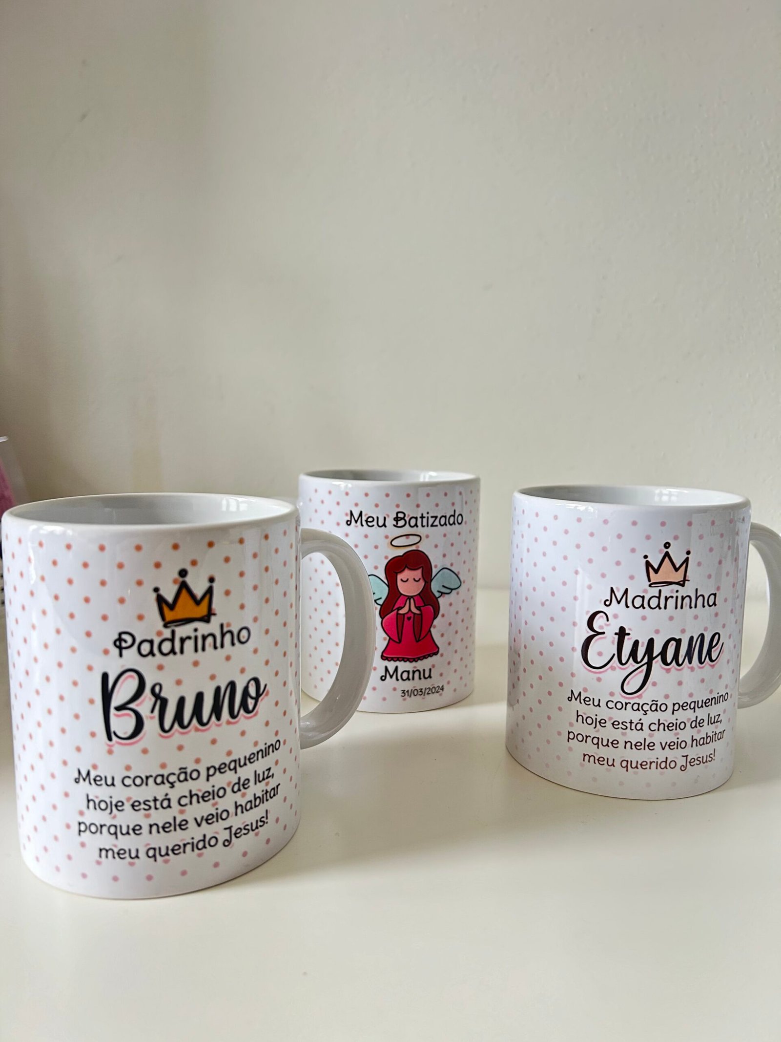 Perfeita para presentear padrinhos, madrinhas, familiares e convidados, a caneca é uma lembrança duradoura. Um símbolo de carinho e da pureza dessa ocasião sagrada.