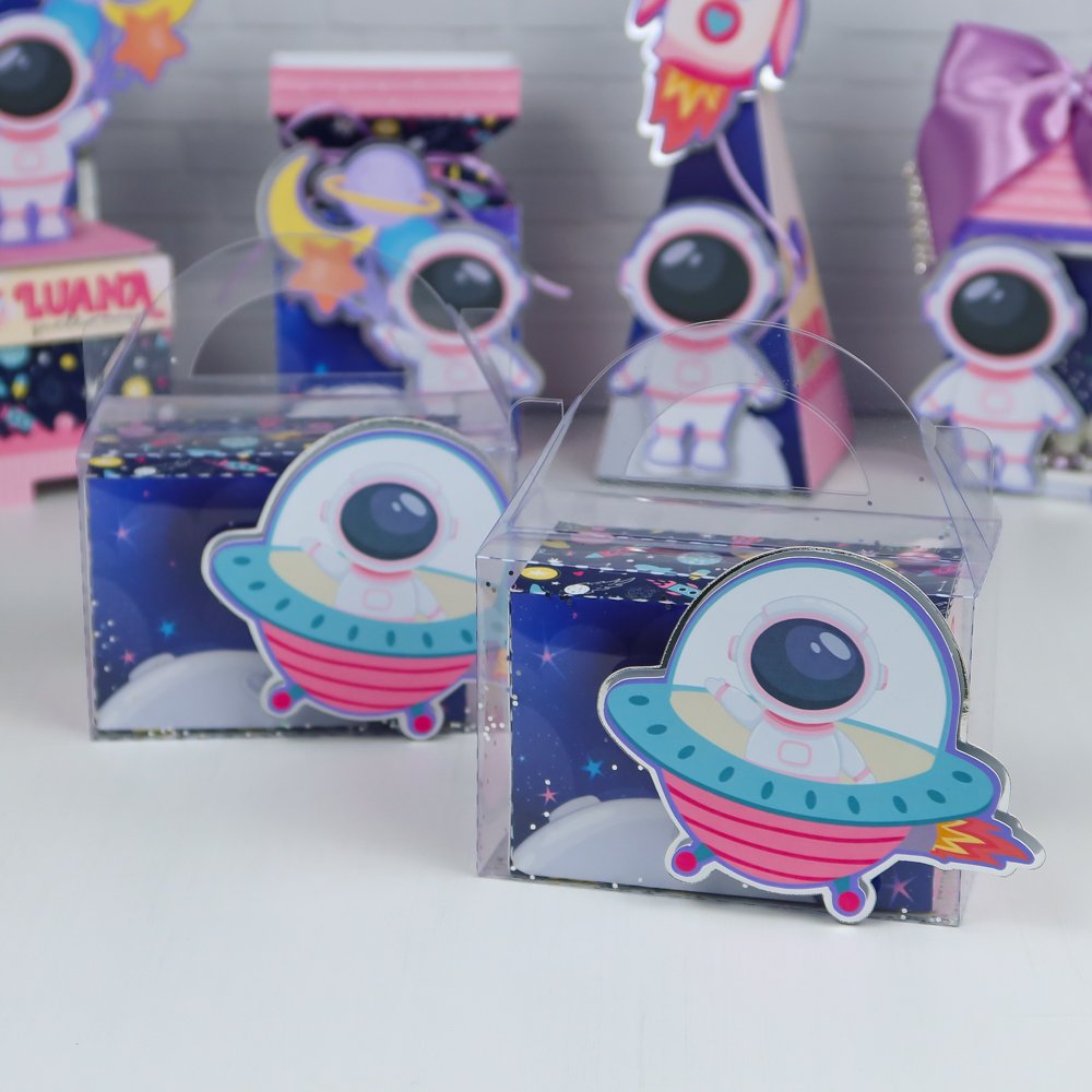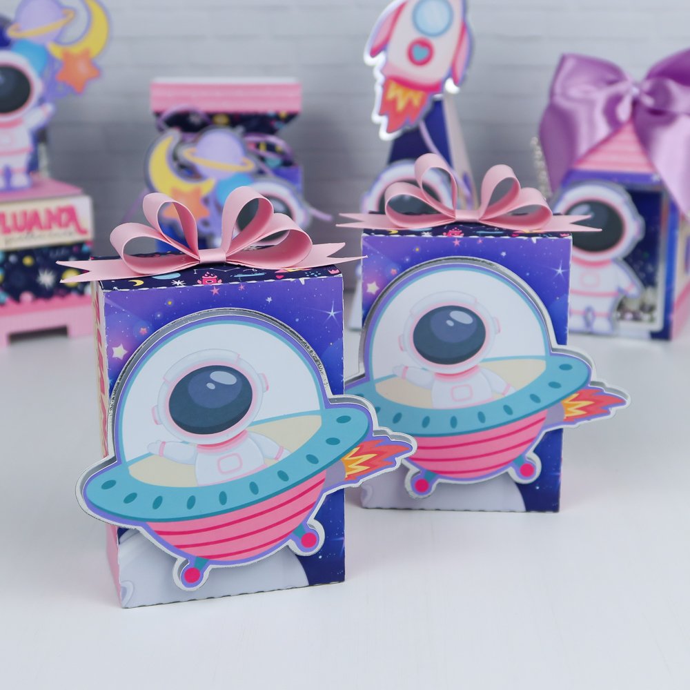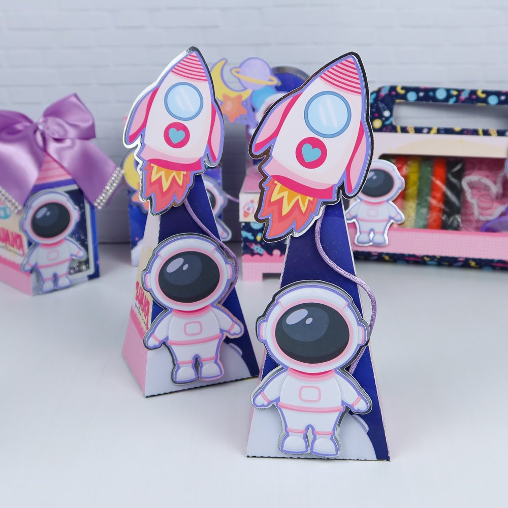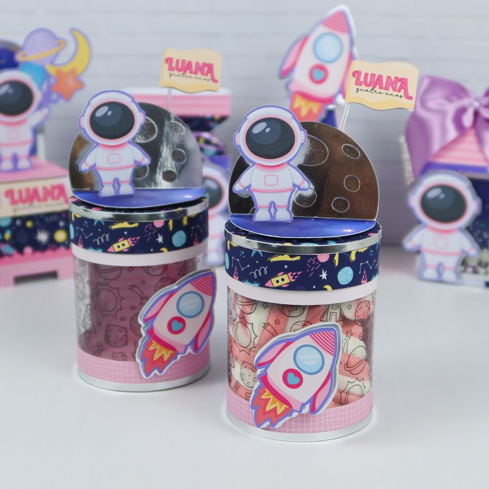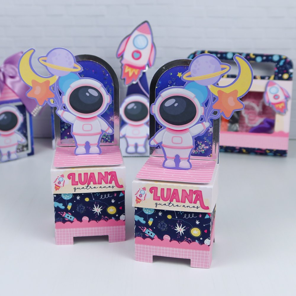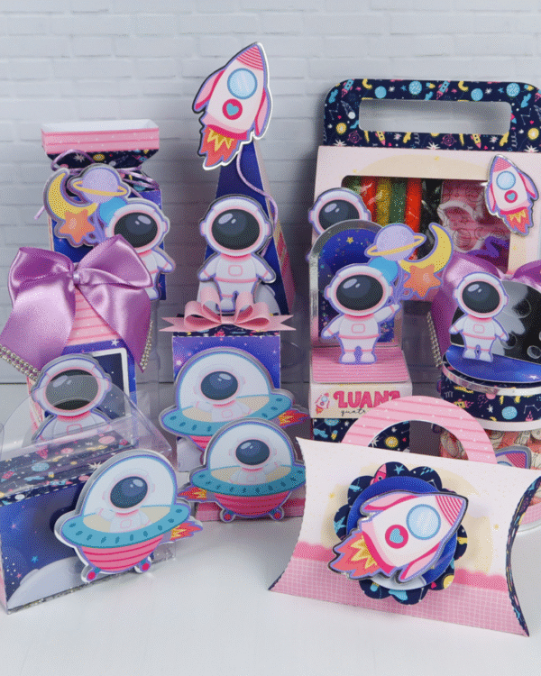 Prepare-se para um aniversário de outro mundo com o Kit Festa Astronauta Menina! Feito à mão com muito carinho e materiais de alta qualidade, ele transforma a decoração em uma verdadeira aventura galáctica – com foguetes, planetas e mini astronautas encantadores.