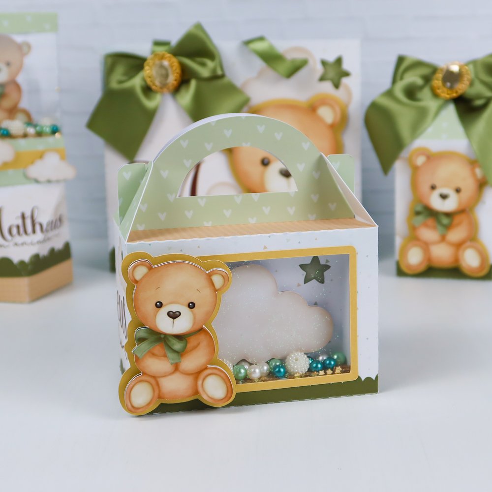 6 caixinhas decoradas com ursinhos, lacinhos e nuvens